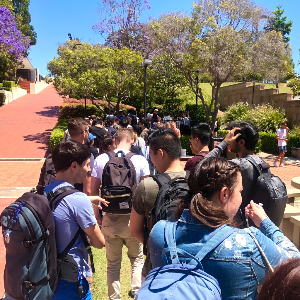 学費と一緒に徴収されるイベント費で催されているとされる昼のバーベキュー。要は無料昼食と言うことで、たくさんの学生が並ぶのだが。
