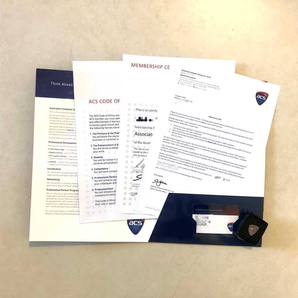 今日はその会員キット(写真)が届いたので、ご報告しようと書き出した感じだ。アマゾンかと思ってフロントに行ったら、でかい封筒を渡され、開けてみたら会員キットが入っていたのだ。もう一つのISACAの方は紙製の会員カードが来ただけだったので、キットを送ってくるというこの構えに感動したのだった。内容はレター数枚にプラスチックの会員証と徽章(右下)が一つ。早速徽章はバッグにつけてみた。今更こんなものをつけても誰も気にしないのだろうが、自分の精神的な引き締めのためには使えそうだ。