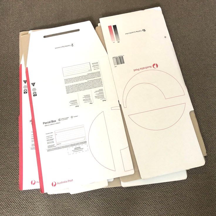 郵便局では合計6個の段ボール箱を購入、30AUDほどを費やした。2500円だ。この高さには辟易とした。